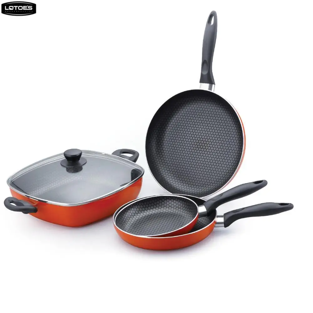 Wuyi LOTOE 5pcs pressed honeycomb non stick aluminium household cookware set with bakelite handle
